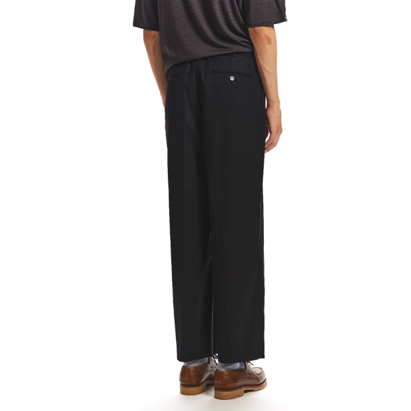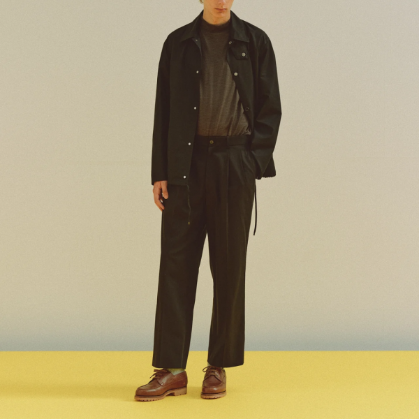クラシカルかつモダンなデザインを追求した「CLASSIC FIT DOUBLE PLEATED TROUSERS」。コンパクトなトップスから大きめのシルエットまで調和する腰周り、そこから裾へと流れる緩やかなテーパードラインにより、幅広いコーディネートに対応。ワードローブの定番として活躍する一本です。コットン素材でありながら、上質な落ち感を備えた生地でその魅力がさらに高まっています。 インド産のオーガニックコットン糸に強燃を加えたヴォイル糸を使った3/2綾のツイル。超高密度に織り上げた生地は糸と織り組織により美しいドレープ感を生み出します。コットン100%とは思えない清涼感あるドライタッチと、コットンの持つ肌あたりの柔らかさを同時に楽しめる素晴らし生地です。 薄い生地感で暑い季節にも快適に着られます。薄い生地ですが生地にはしっかりと強度がありシーズンを通して履いていただけます。 【サイズ】 3 : ウエスト84〜90cm / 股上30.5cm / 股下71cm / わたり38.5cm / 裾幅24.5cm 【素材】 オーガニックコットン100% 【このブランドについて】 MARKAWARE(マーカウェア) 『real mans garment』『真の男性の為の洋服づくり』がコンセプト。ハイエンドガーメントと洗練されたシルエットで提案する大人のためのリアルクローズ。 MARKAWARE(マーカウェア)は60年代〜70年代のカウンターカルチャーをベースにした、現在は失われてしまった男性像の追求を目指した服作りをしている。 素材の繊維にまで気を配り、最適な加工を時代性とファッションに照らし合わせて仕上がり感を表現する。