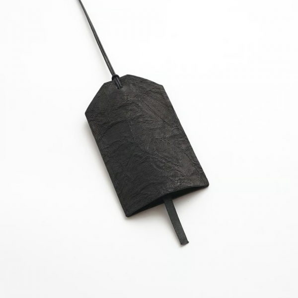 荷札風のデザインとシワ感のある革の質感が特徴のネックストラップタイプのキー/カードホルダー。