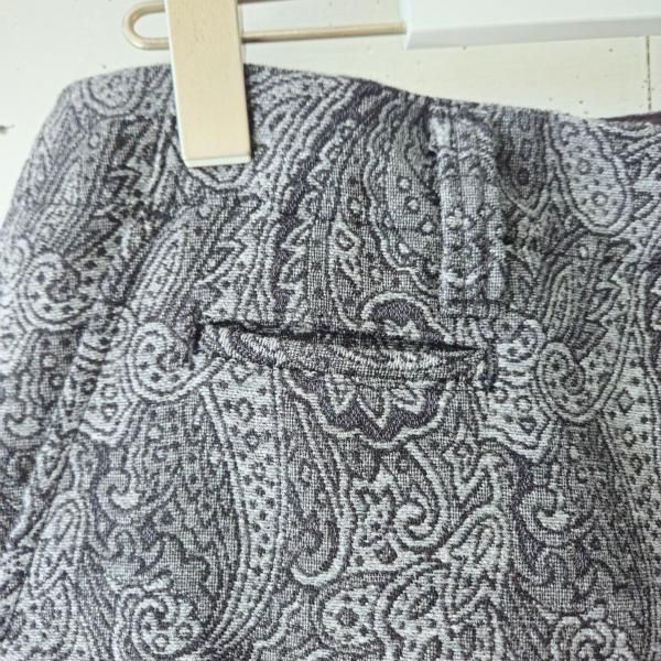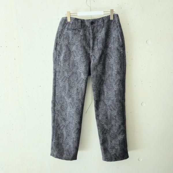 BRU NA BOINNEの「いまだかつて人のゆかぬ道を心猛く進む、この服を身にまとい」というコンセプトを体現したペイズリーパンツ プリントではなく生地自体に緻密なペイズリー柄を表現したパンツになっており 浮き上がったウールの厚みとズドンとした太めのシルエットの無骨さと 非常に繊細なペイズリー柄の高貴さの双方を兼ね備えた まさに「いまだかつて人のゆかぬ道」を進むBRU NA BOINNEならではの雰囲気のパンツになっております。 【サイズ】 M : ウエスト80cm / ワタリ幅36cm / 股上33cm / 股下70cm / 裾幅 22cm L : ウエスト84cm / ワタリ幅37cm / 股上34cm / 股下72cm / 裾幅 23cm 【素材】 表生地 ウール60% ポリエステル38% アルギン酸 1% ヘンプ1% 裏生地 ポリエステル100% 【このブランドについて】 BRU NA BOINNE(ブルーナボイン) 大阪を拠点とするブランド。 〜 ON A UNDEVELOPED WAY , MOVE FORWARD WITH A DESIRE TO FIGHT BE DRESSED IN "THE ONE"〜 「いまだかつて人のゆかぬ道を心猛く進む、この服を身にまとい」のテーマをもとに、 糸や生地、ボタンなど素材一つ一つにこだわりながらも、遊び心にあふれ、身につけて楽しく、幸せになる洋服を提案。