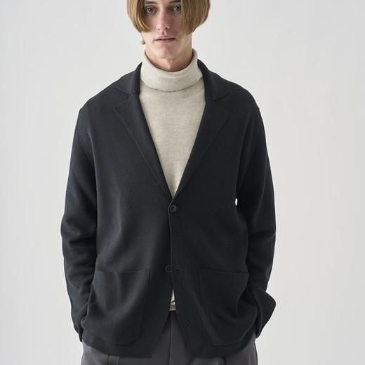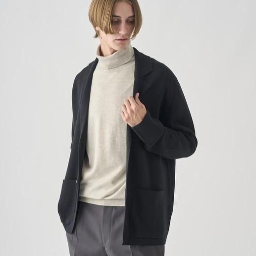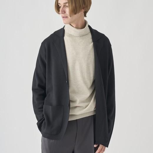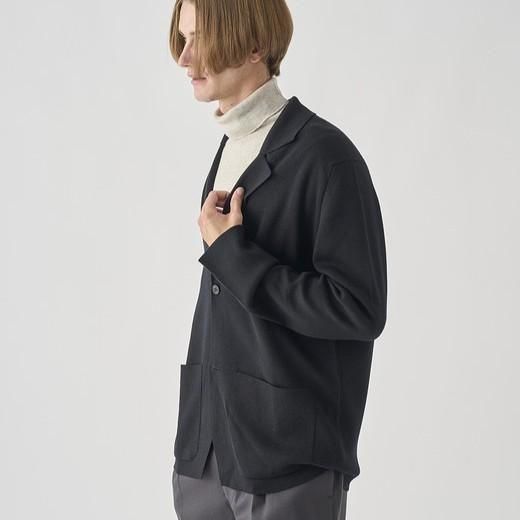 こちらほどよいリラックス感のあるニットジャケット。やや厚地の24Gニットを採用し、大人の休日スタイルとしてカットソーにさらりと羽織るだけでも様になり、ニットと重ねてのアンサンブルも上品にまとまります。しなやかな素材感でしわになりにくく、幅広い季節に活躍します。