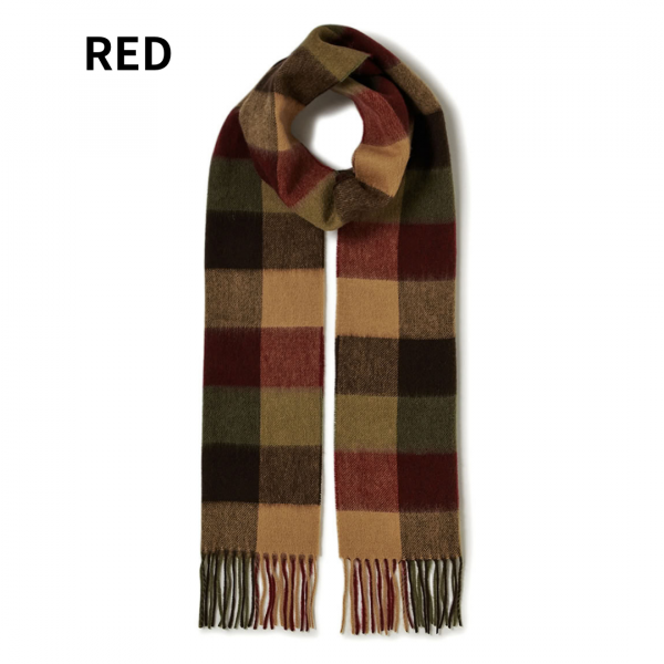 Barbour(バブアー)ラムズ ウール ブロックチェック マフラー - RED