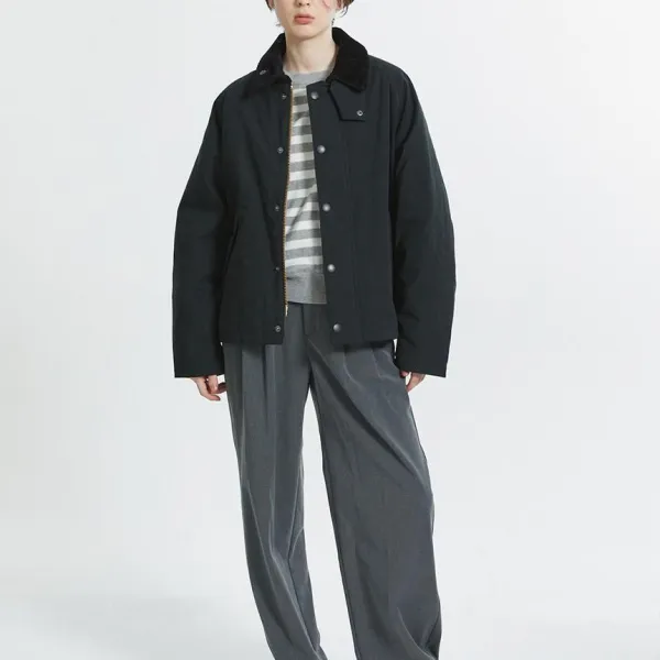 アイコンである コーデュロイ襟 がさりげなく品を添え、シンプルな着こなしでも雰囲気を格上げしてくれます。