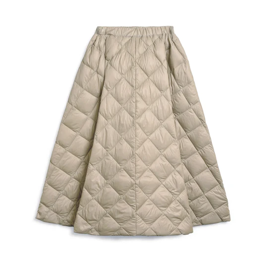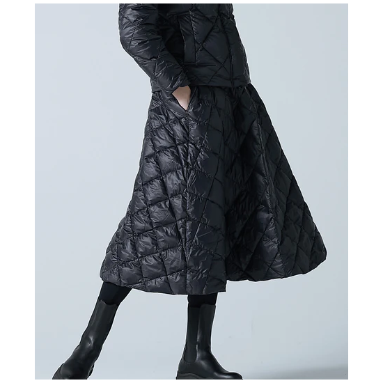 ミニマルで洗練された印象と、しっかりとした防寒性を両立したダウンスカート。