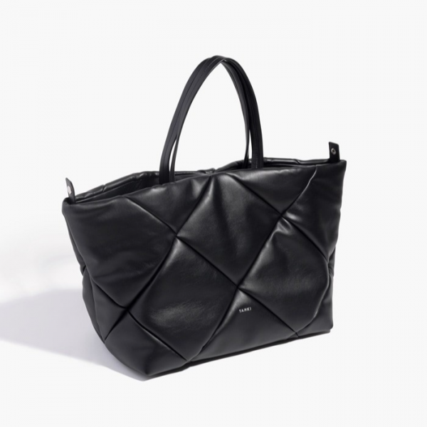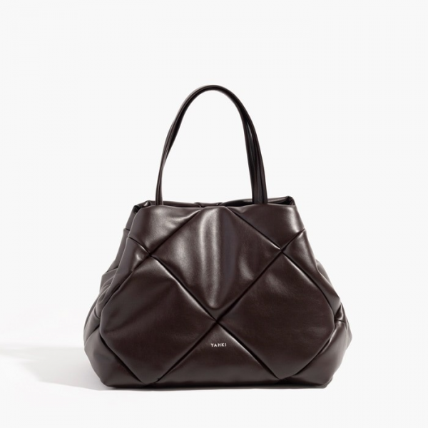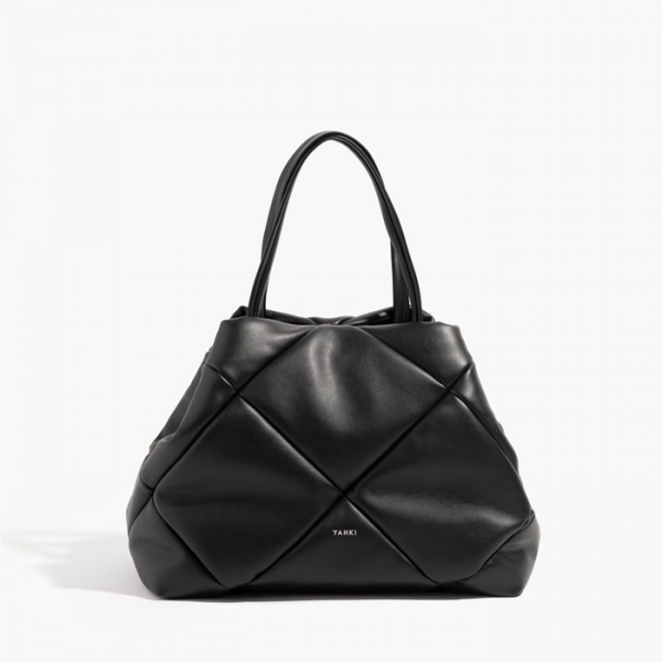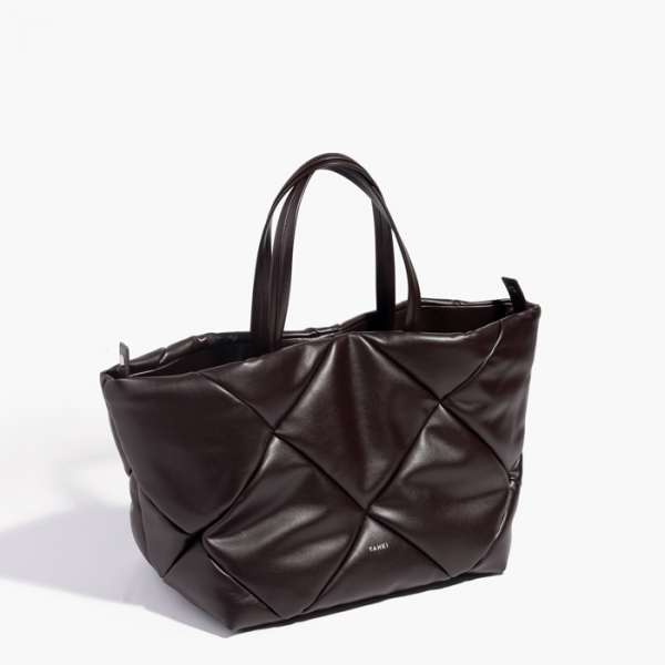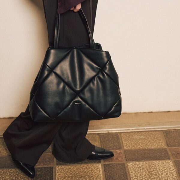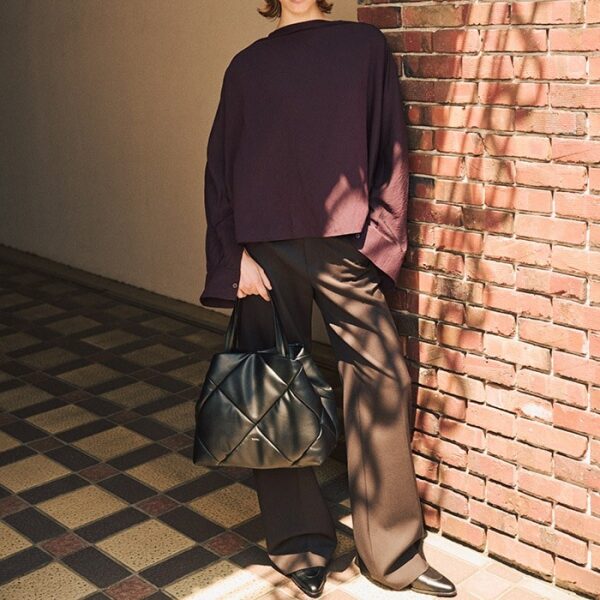 ボリュームのあるキルティングと、やわらかな艶感のある素材が目を引くビッグトート型