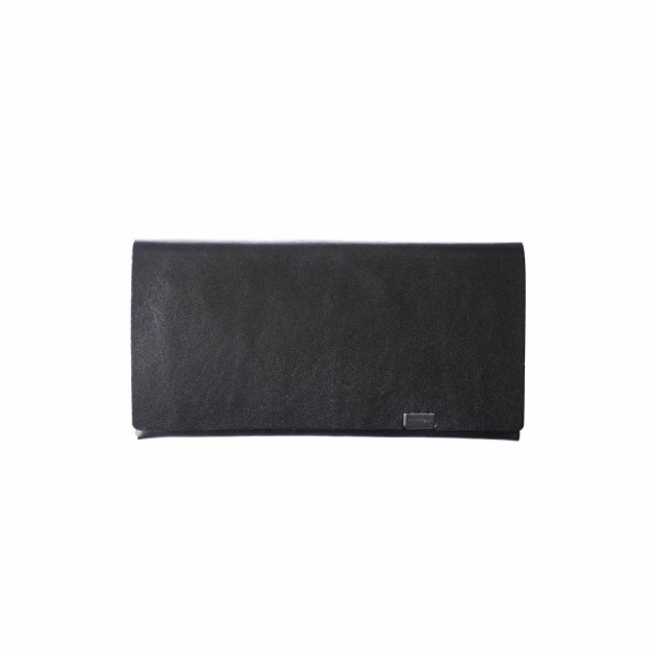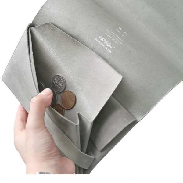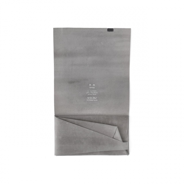 結婚式などで贈答品を包む「袱紗(ふくさ)」や折形の美しさからインスピレーションを受けたデザインで、一枚革を折り畳んで形づくるミニマルな構造が最大の特徴。縫い目がなく、丁寧に折り重なった革の表情が静かに美しさを主張します