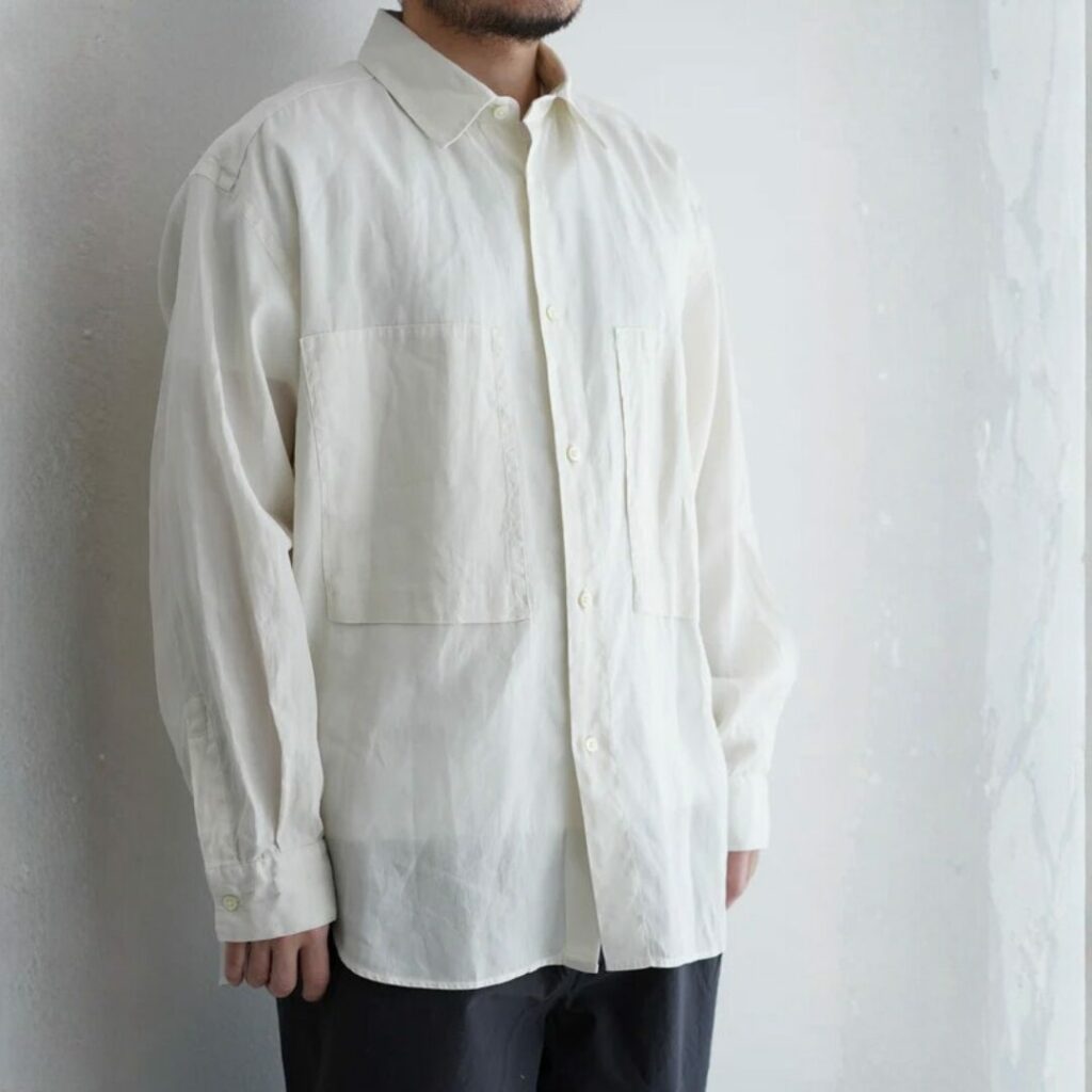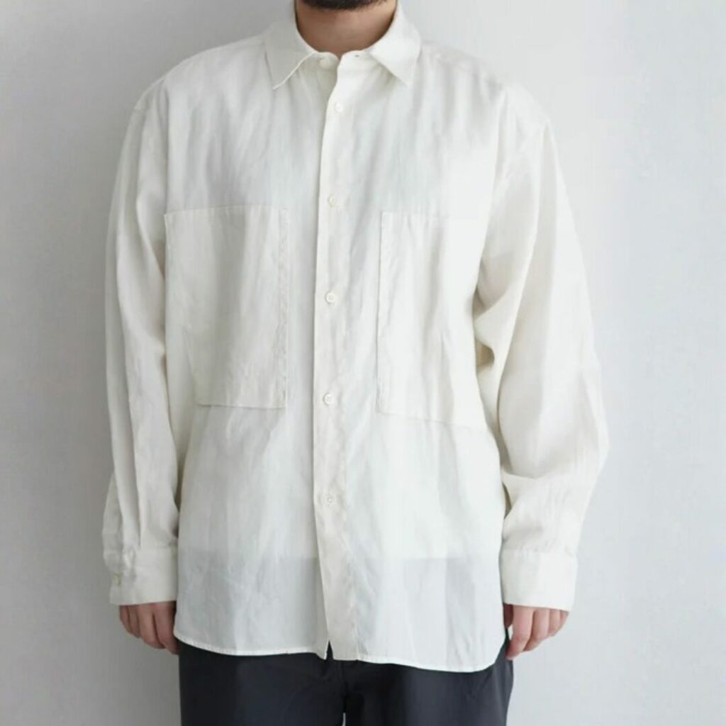 MARKAWARE サマーウールの美しい生地が魅力の名品シャツ ¥38,500-