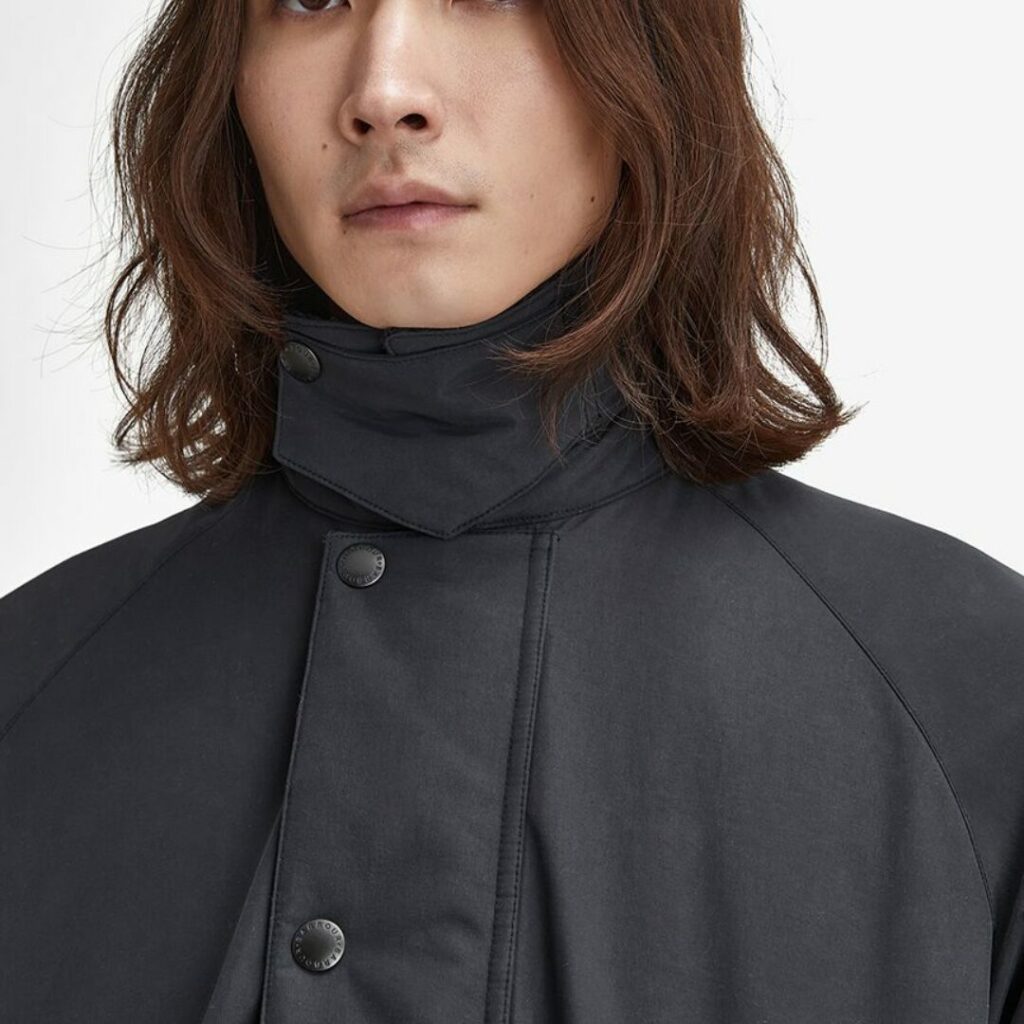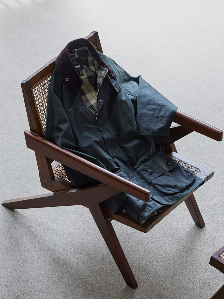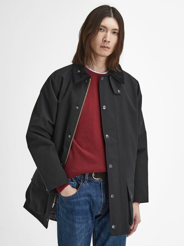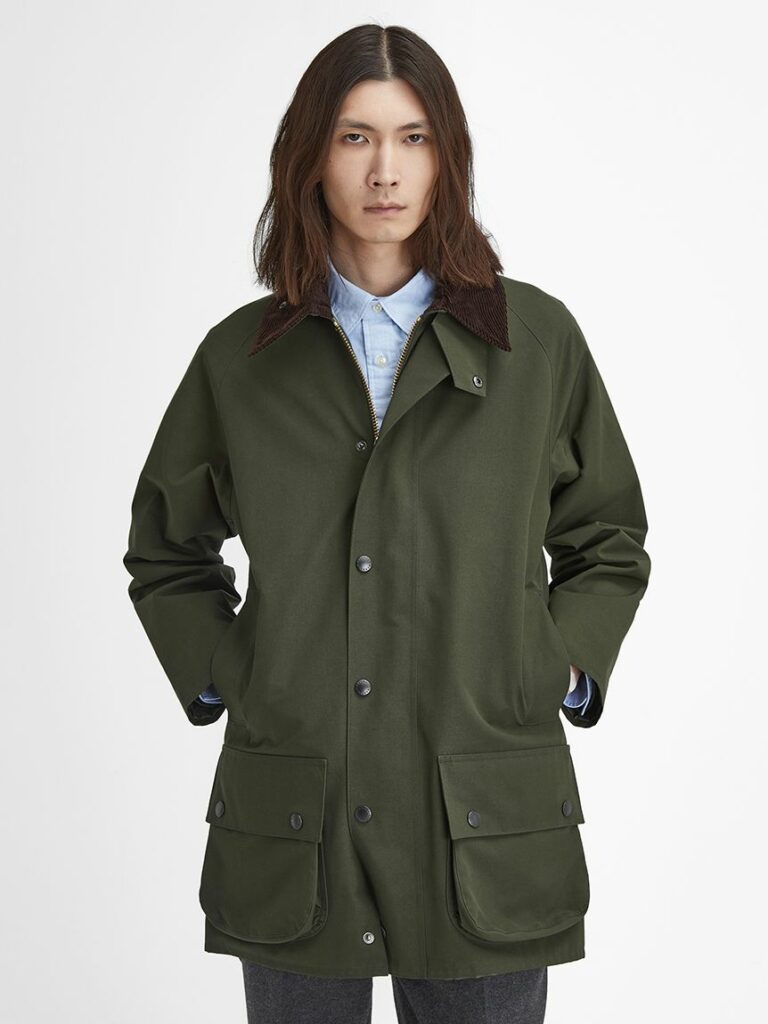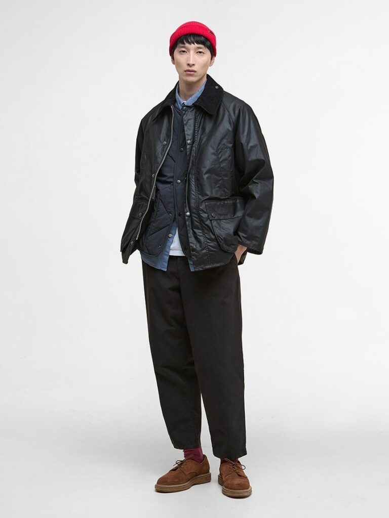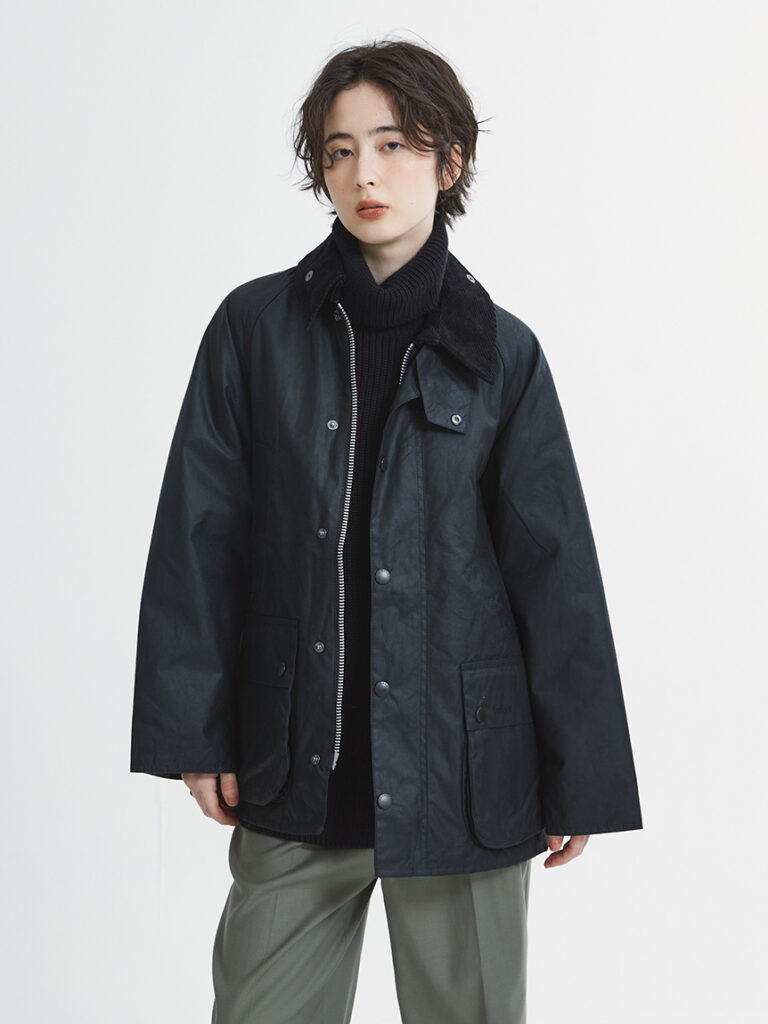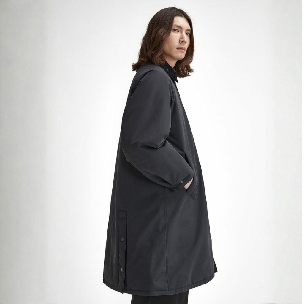 クラシックな Barbour の要素(コーデュロイ襟や伝統的なシルエット)を保ちつつ、オーバーサイズでモダンな印象なのが魅力のコート
